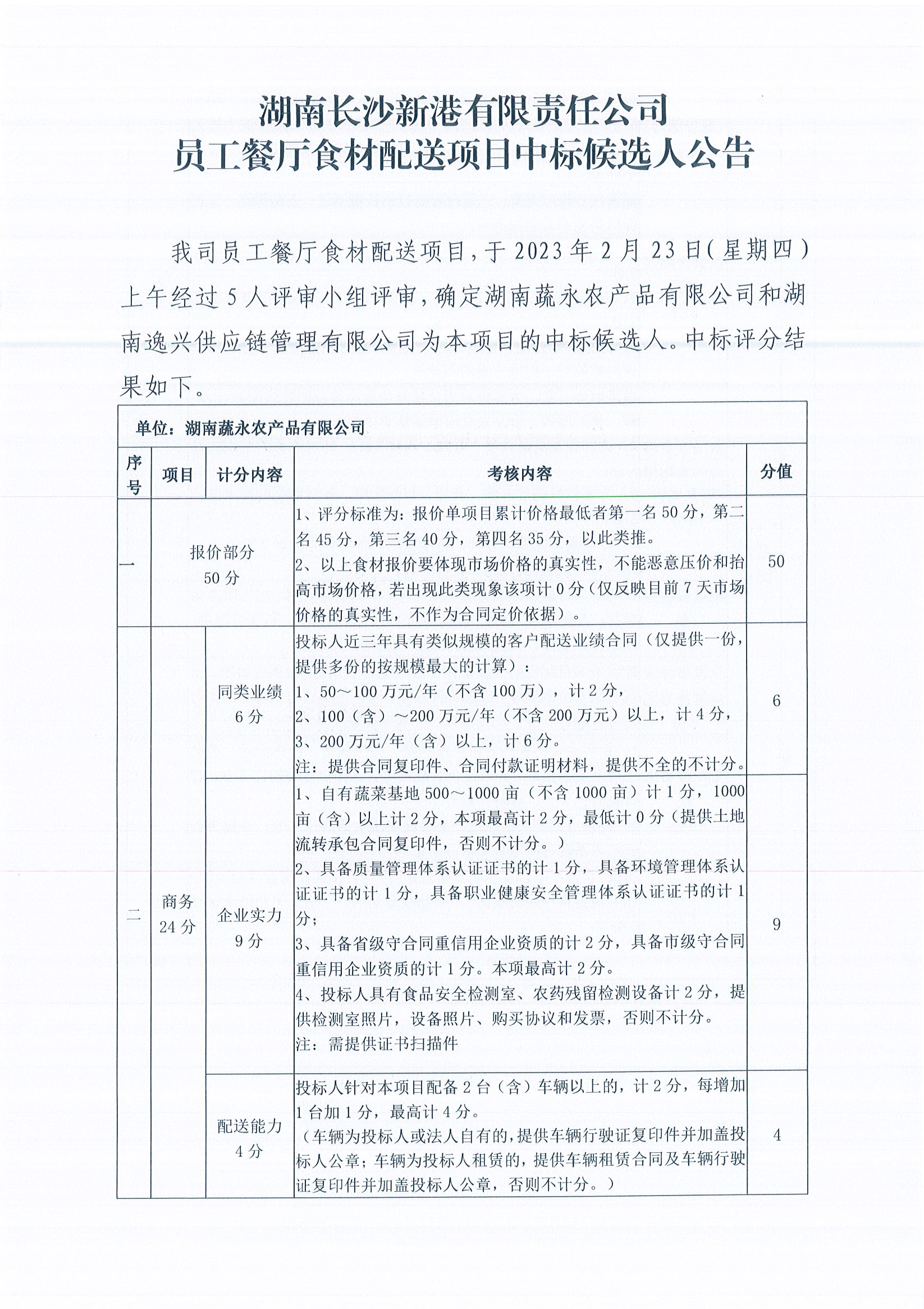 員工餐廳食材配送項(xiàng)目中標(biāo)候選人公告
